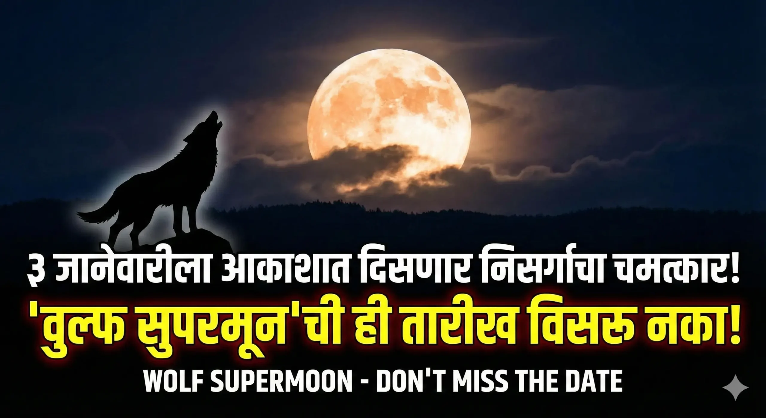 येत्या २ आणि ३ जानेवारीला आकाशात ‘वुल्फ सुपरमून’ (Wolf Supermoon) दिसणार आहे. सोप्या भाषेत सांगायचं तर, नेहमीपेक्षा खूप मोठा आणि तेजस्वी चंद्र! बऱ्याच लोकांचा तारखेबाबत गोंधळ उडाला आहे, तोच दूर करण्यासाठी आणि याचा शेतकऱ्यांना काय फायदा होईल, हे सांगण्यासाठी ही खास बातमी.